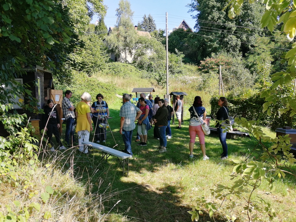 unseren Imkerfreund Matthias Vogel auf seinem Bienenstand in Merrane. Bei strahlendem Wetter konnten die kleinen Gäste