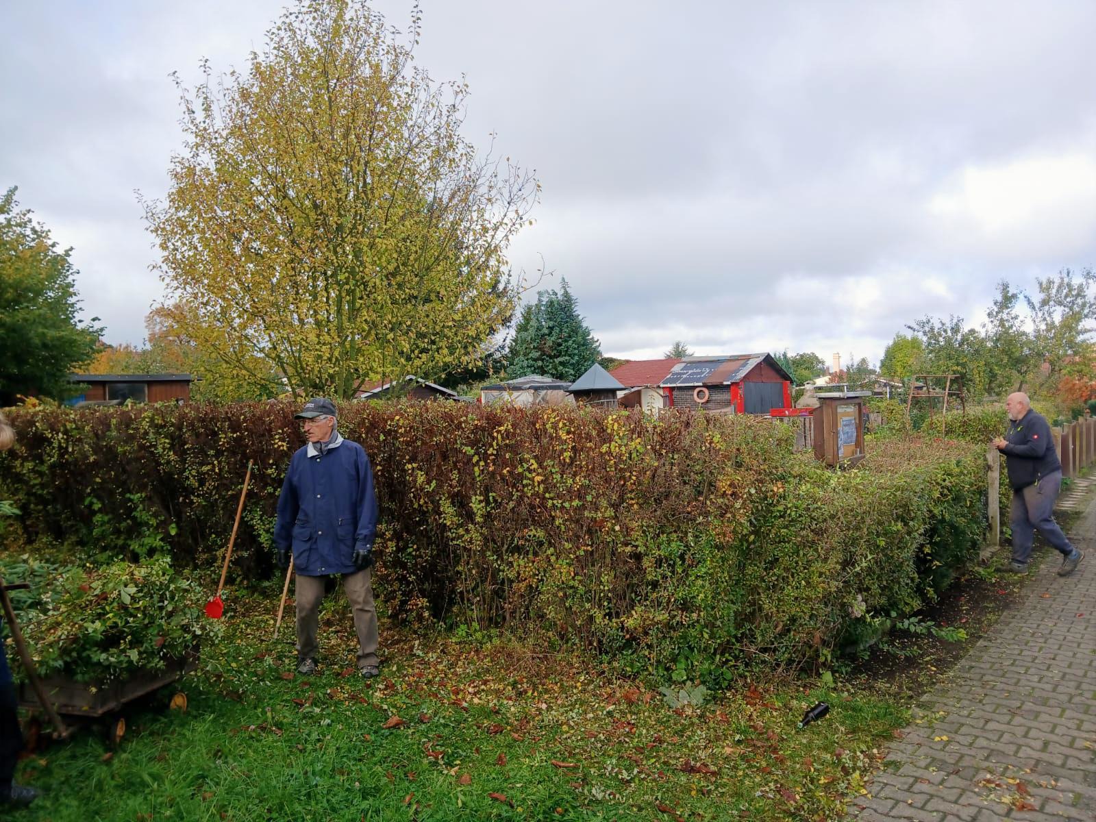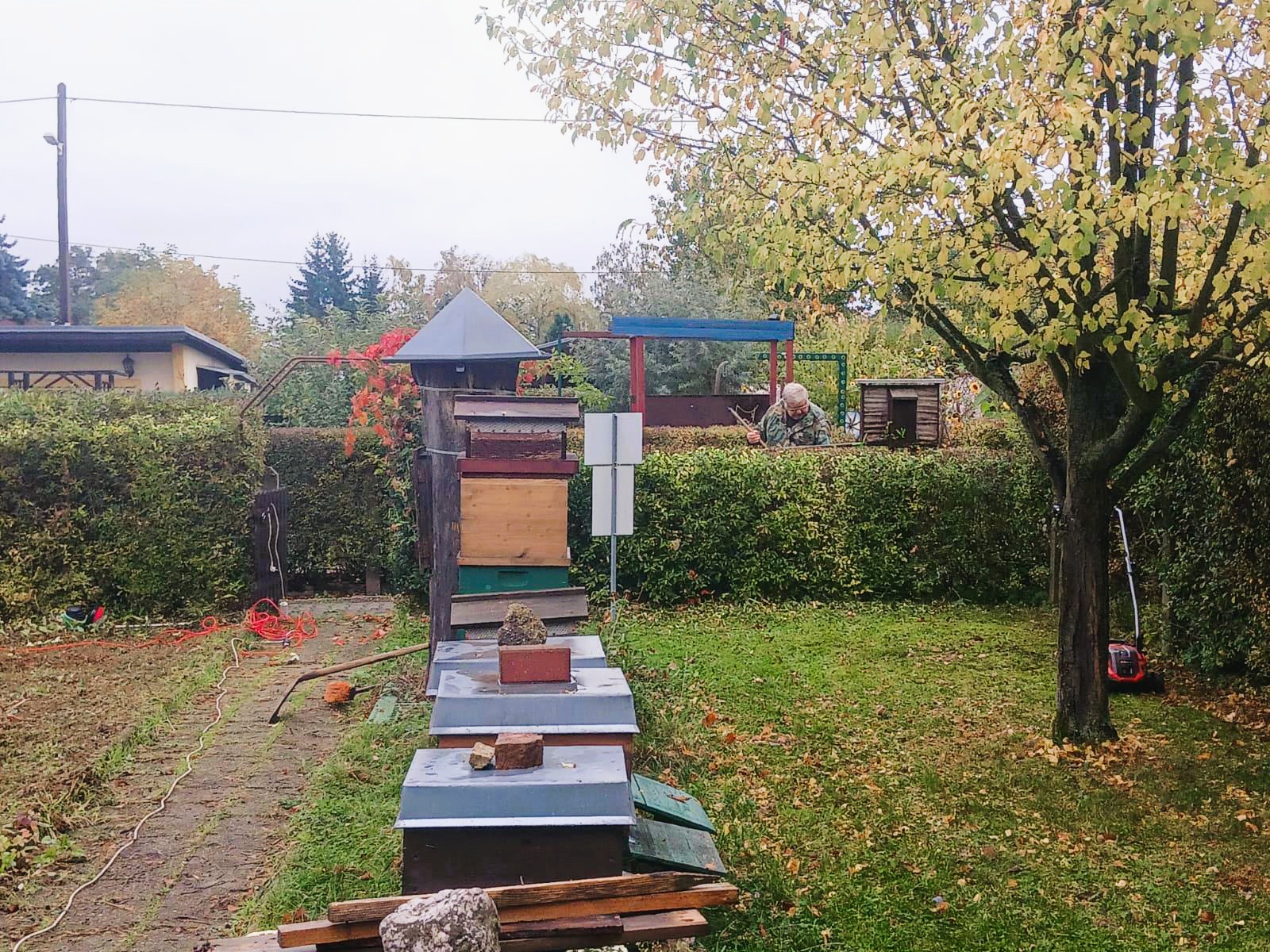 Es wurden die Hecken geschnitten, Laub entfernt, das Gelände aufgeräumt und die Beuten winterfest gemacht.